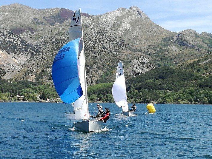 Sabado soleado con 10 nudos nordeste. 5 barcos toman la salida. Javi Mulas y Espe Perez de Cartagena, Ángel Puente y Nico Pérez de León, Marta Hernández y Fran Almeida de Almería, Edu y Ana Bellosillo de Madrid y Luis Melero de Madrid con Jose Luis Becerrade Galicia. Campo favorecido por la izquierda y muy corto. Salida por el pin de los 3 barcos de Madrid, Almería y Cartagena. Angel con problemas técnicos va defendiéndose, cayendo por la derecha del campo. Llegada apretada en barlovento de los 3 barcos que salieron primeros. Dado el corto recorrido, el spinnaker molesta más de lo que ayuda en la popa, pero nadie quiere arriesgarse. Los barcos de Cartagena y Madrid van muy juntos y en la primera y segunda prueba se turnan el primer y segundo puesto con media eslora de diferencia. En la tercera prueba, el barco de Almería con problemas para subir el spi, decide hacer la popa en orejas de burro. Ángel y Nico, con problemas en el casco, deciden retirarse tras la tercera prueba. En la cuarta prueba del día, gana el barco de Almería con el Madrileño en segunda posición y terceros los de Cartagena. El primer dia termina con un empate a 7 puntos entre el Pancha la Pera III de Cartagena y el Flower of Scotland de Madrid. Terceros la tripu de Almería, Cuartos el equipo del CINA y quintos el Castilla y León Nos Impulsa de Ángel y Nico. El segundo día empieza con el barco de León retirado, así como.el Flower of Scotland de Madrid, por una lesión del patrón. Día de viento fuerte del nordeste (15 nudos) toman la salida 3 barcos y hacen 2 mangas, quedando primeros el Pancha la Pera III de cartagena, segundos el barco de Marta de Almería y terceros el CINA de Luis Melero y Joseluis Becerra. La general dejó el siguiente palmares provincial: 1° Cartagena 2° Almeria 3° Madrid 4° Madrid- Galicia 5° Leon. Buenos vientos! Clasificación completa y Fotos